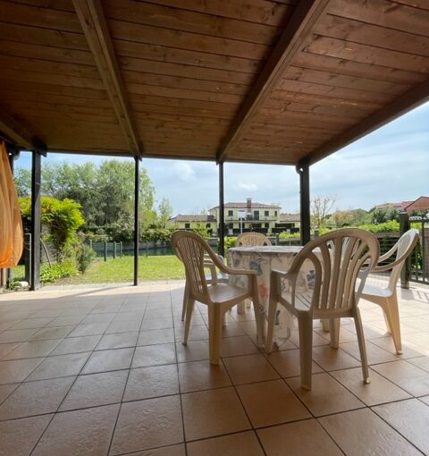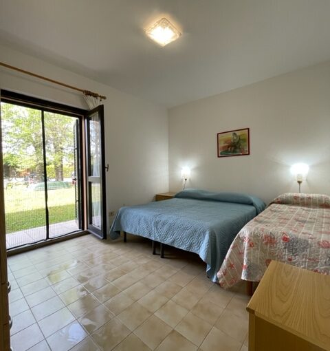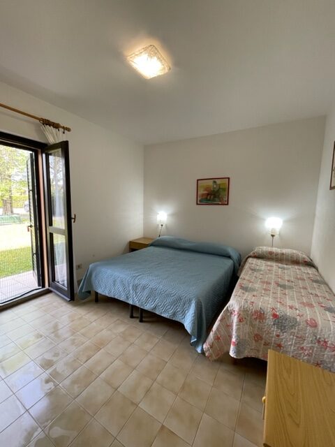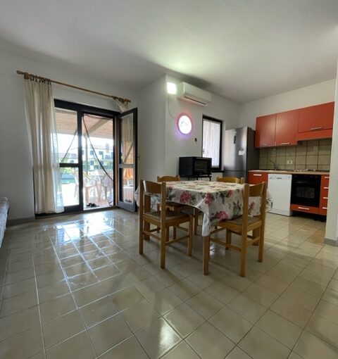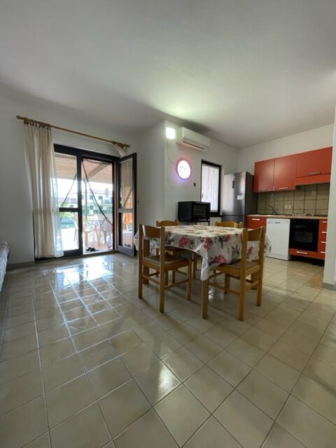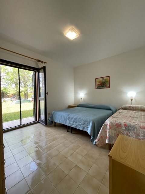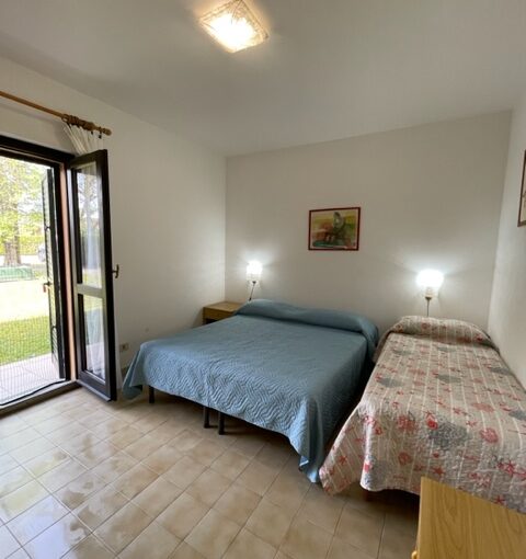 Isola di Albarella: Appartamento al piano terra con affaccio sul fiordo, composto da soggiorno con angolo cottura, una camera matrimoniale e bagno con doccia. Esternamente portico con piccolo giardino e arredo mare.