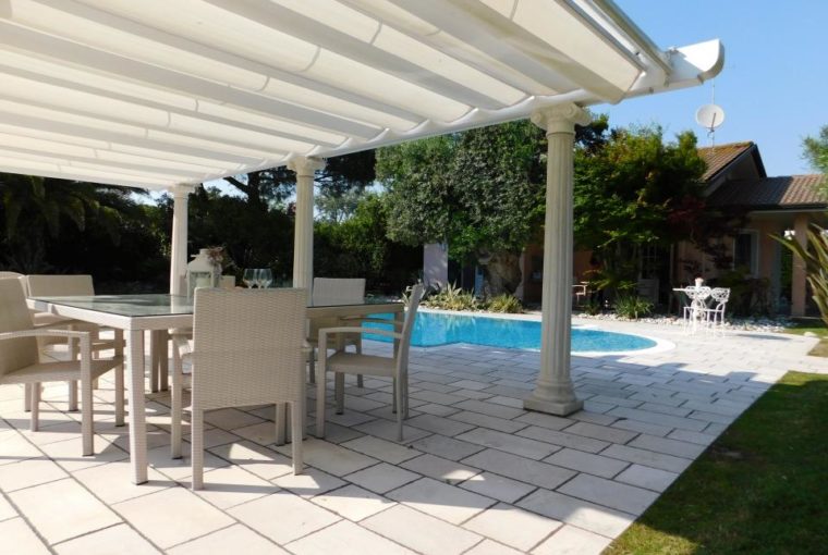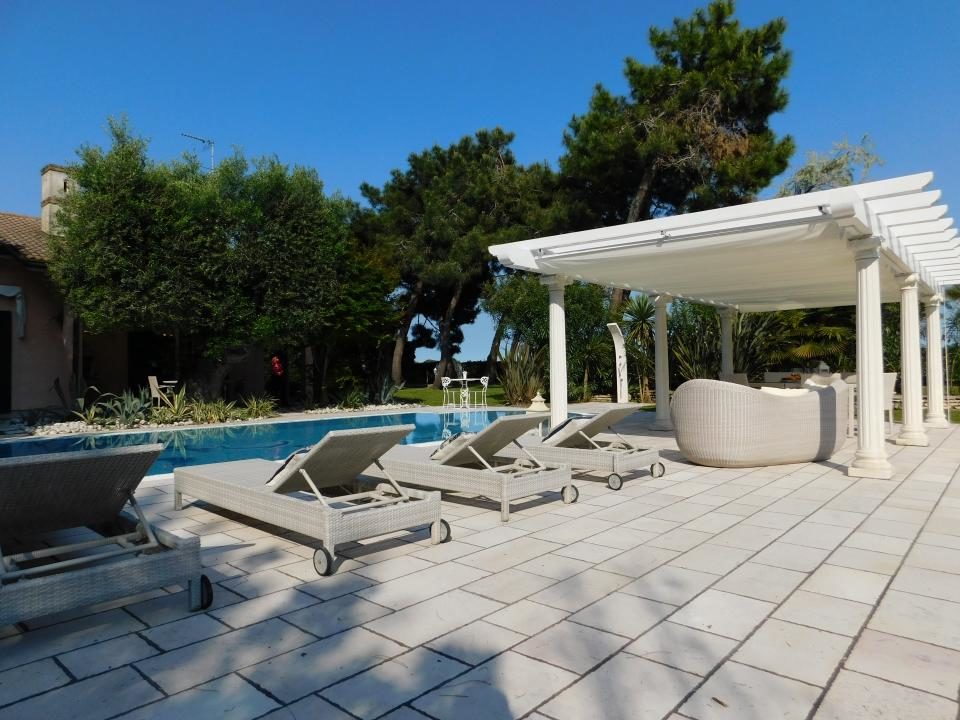 Isola di Albarella: Villa con piscina e vista laguna. Questa meravigliosa casa dispone di 3 ampie camere da letto, 2 bagni con doccia, cucina, soggiorno luminoso con finestre all’inglese che permettono di vedere una bellissima vista sulla piscina. All’esterno troviamo il portico con camino e mobili da giardino, la cucina esterna con forno e barbecue, la piscina, un grande giardino (circa 1000 metri) e 2 posti auto.