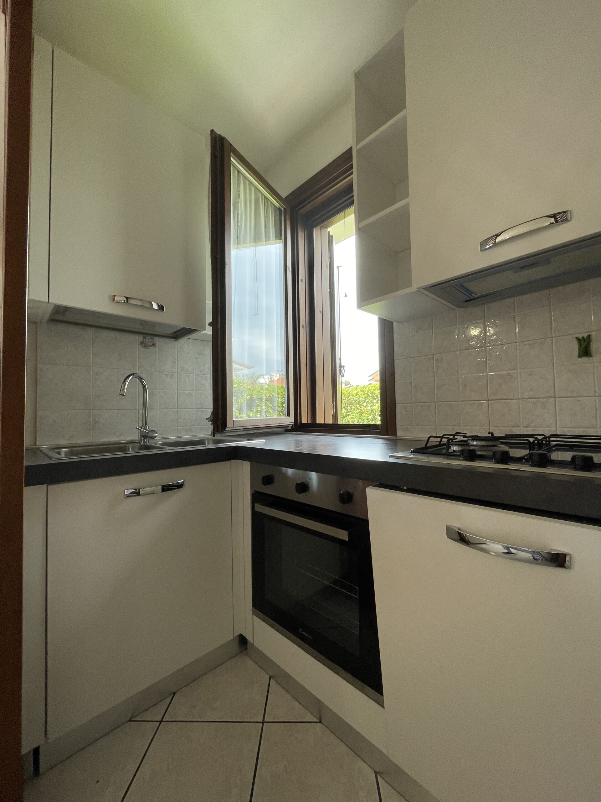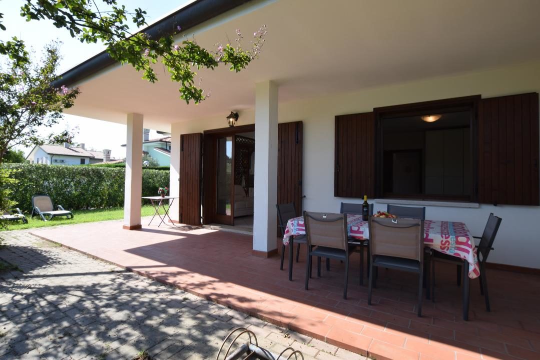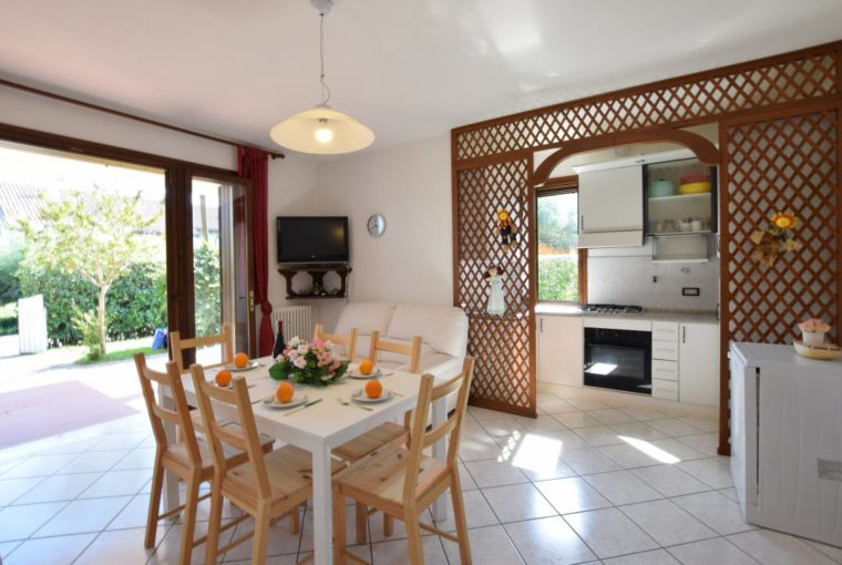 Isola di Albarella: Bifamiliare disposta interamente al piano terra con un luminoso soggiorno con cucina, 2 camere matrimoniali , 1 camera con 2 letti a castello e 2 servizi. Esternamente gode di un ampio giardino con porticato , arredo mare , barbecue e 2 posti auto.
